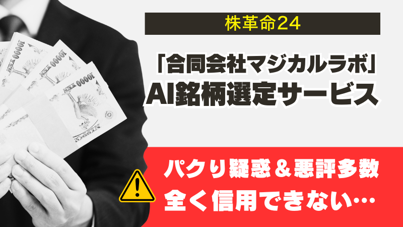 また、マジカルラボは金融庁に登録してない無登録業者で、投資助言は出来ません。にも関わらず金銭を受け取り銘柄情報を提供してるのは、金商法違反に問われる恐れが。