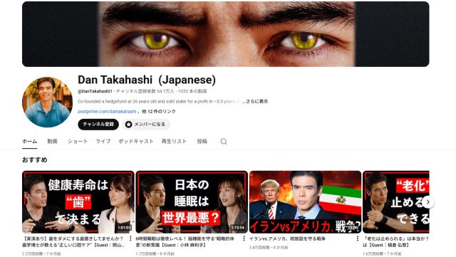 Youtube「Dan Takahashi (Japanese)」は投資に関する情報は減り、最近は「Dan Talk」という対談企画動画を出してますが再生数はかなり少ないです。